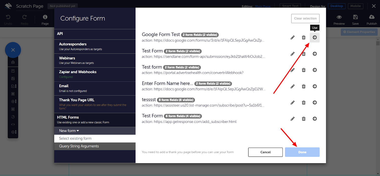 Click Create. Then, click the Use button next to your form’s name. Click Done.