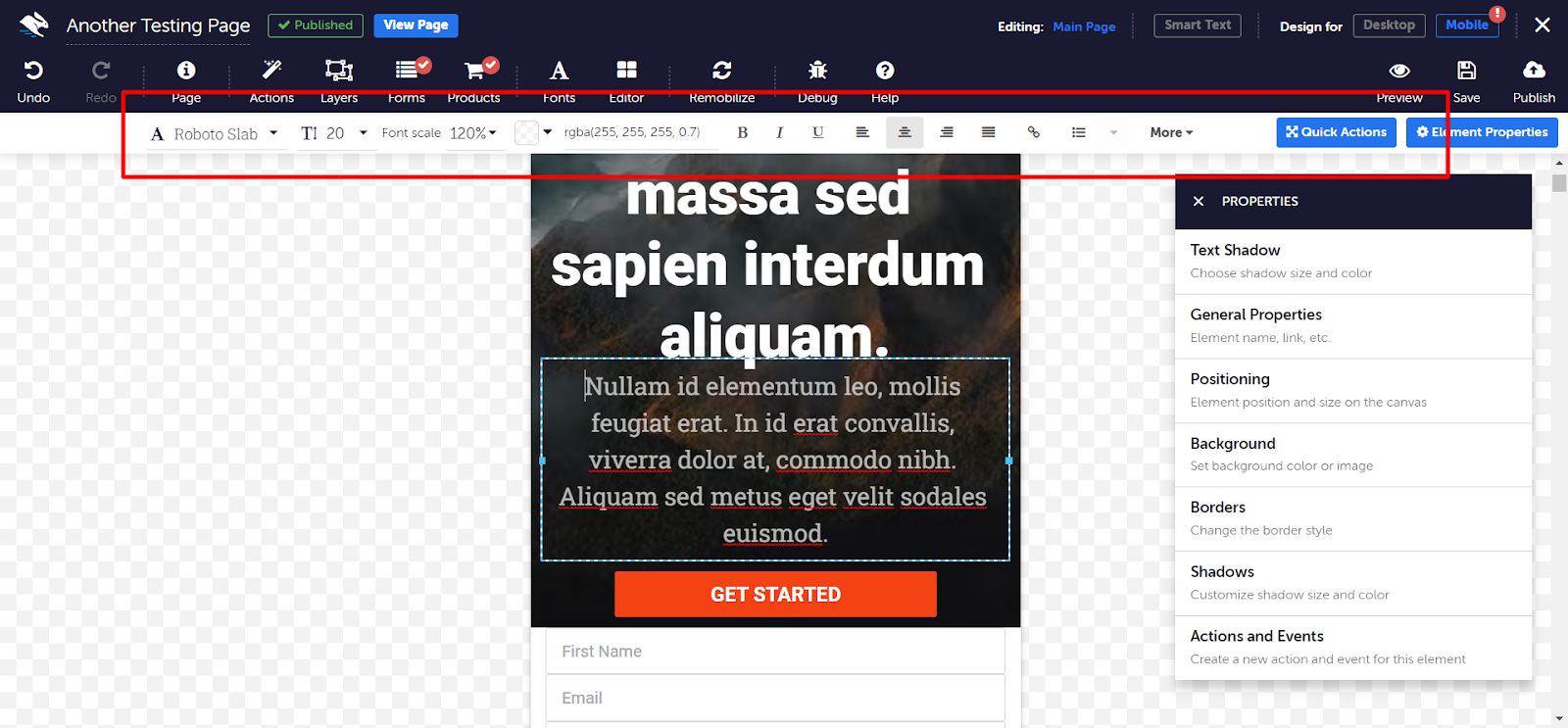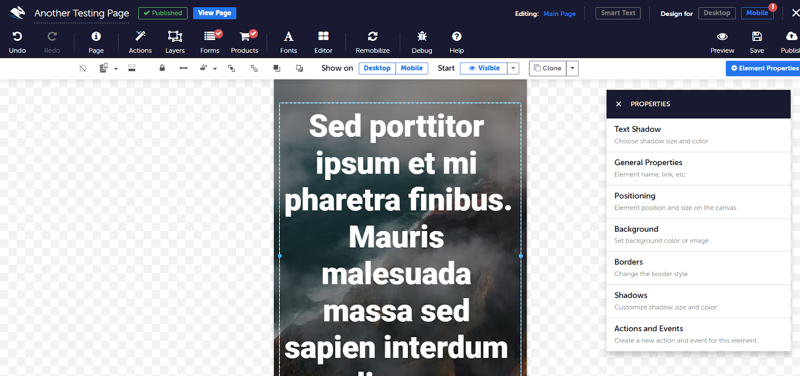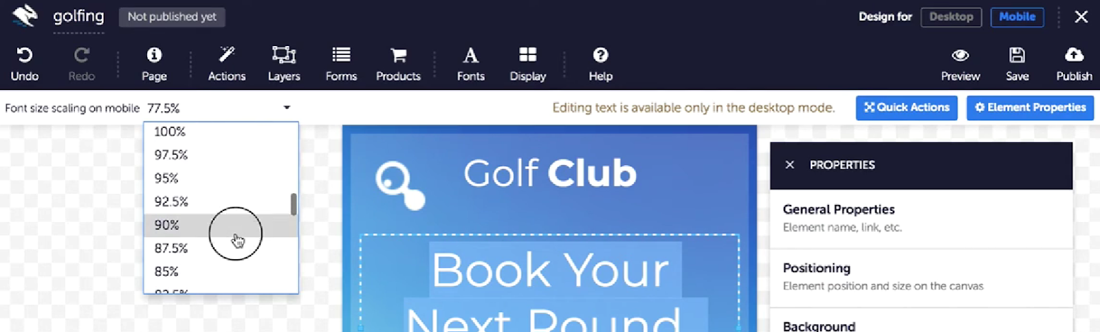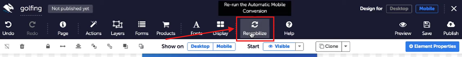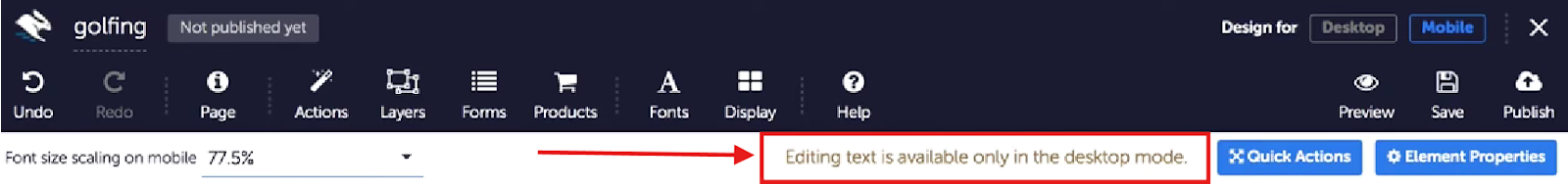 - Limitation: You cannot add new elements while in mobile view; you can only edit the properties of existing elements.
